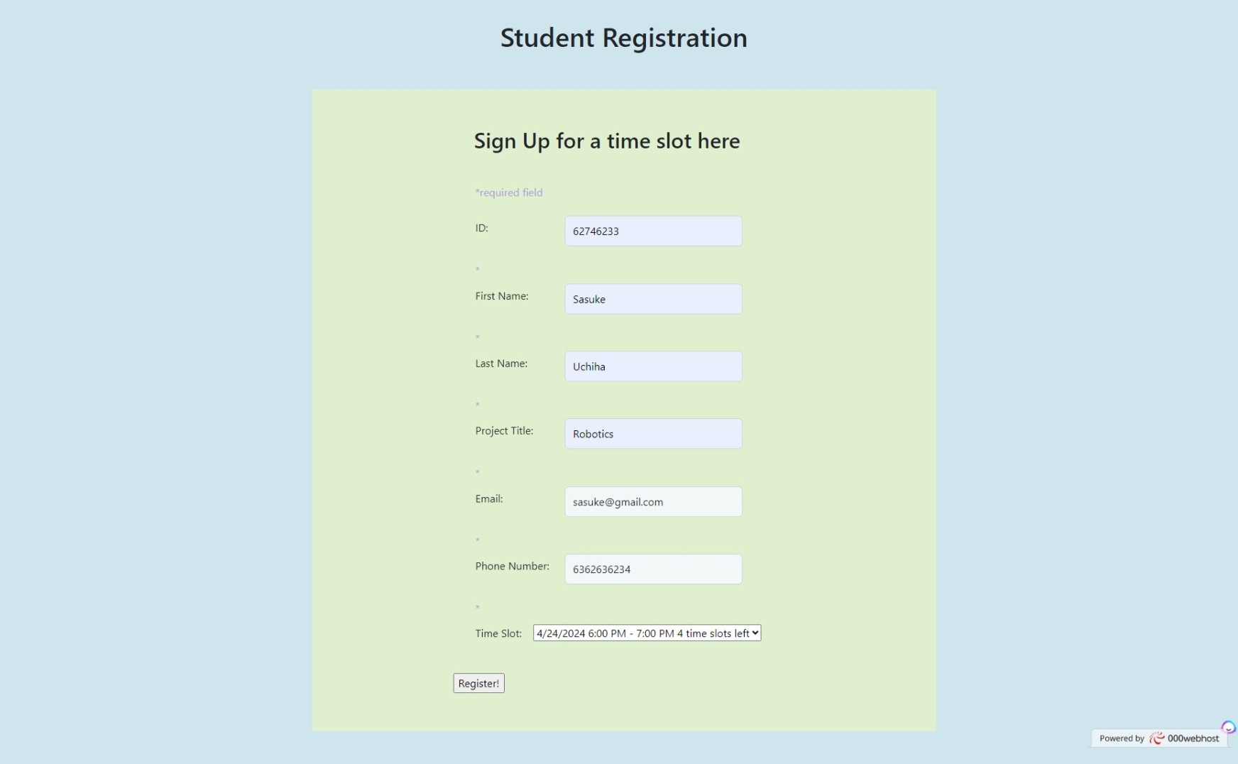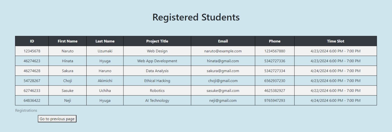 Developed a web-based system for students to register for demo sessions efficiently.